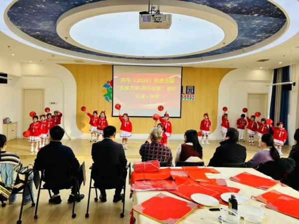 活动伊始,幼儿园小朋友们身着喜庆服饰,带来舞蹈表演《马年大吉》。童真烂漫的舞姿、活泼可爱的表情,赢得现场阵阵热烈掌声。表演结束后,孩子们向到场嘉宾献上精心准备的小礼物,用稚嫩清脆的话语传递新春的诚挚祝福,让现场暖意融融。